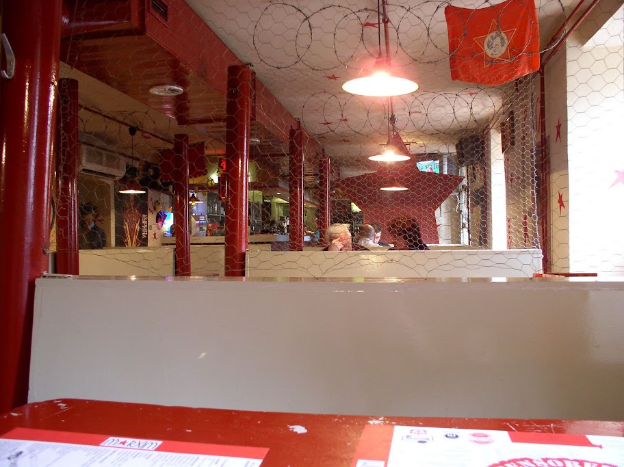 Végül is semmi spéci, ezekből a lepukkant kocsmákból Pannóniában tizenkettő egy tucat, etcetera. Viszont étkezni is lehet, a kaját a szomszédos, a Váci-utca sarkán levő vendéglátó (Galilei) konyhájából hozatják! Figyelem: a Váci-utcai árak töredékéért lehet itt étkezni, ha az ember megbirkózik az itteni geopolitikai valósággal. Sajnos, későn érkeztünk (Uraim, ne igyanak több Unikumot ebben az állapotban!), úgyhogy nem volt már konyha, de ha valaki tesztelt már ott, mi szívesen fogadjuk megfigyeléseit.