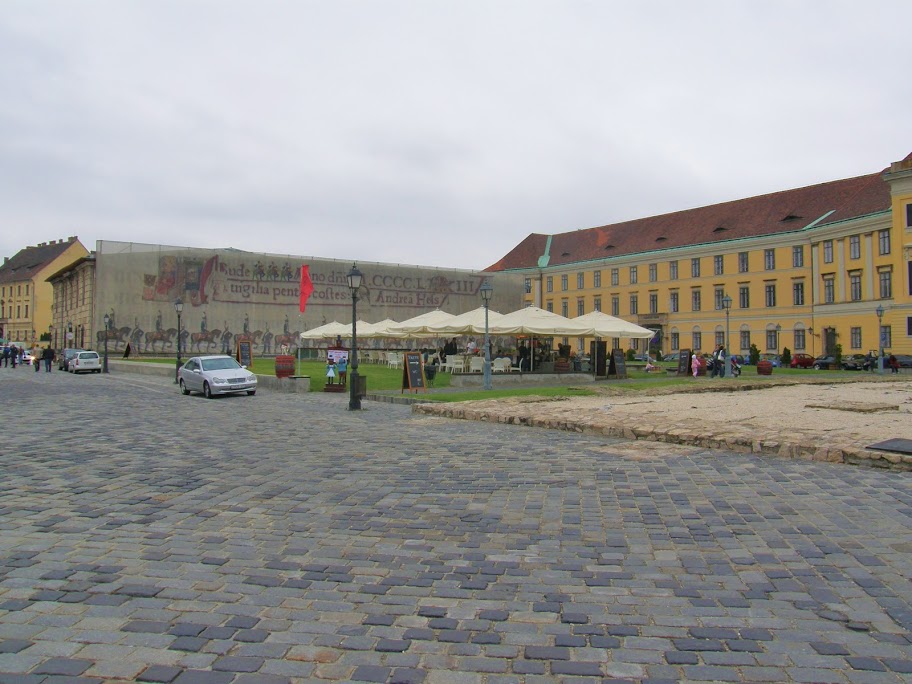Szent György tér a Várban, hol? Sokan talán pontosan nem is tudják, hisz' hosszú évtizedek óta nincs tér jellege, inkább kopár fennsík, amit csupán két messzi szélén, keleten és délen határolnak épületek, s északi fókuszában áll egy közel hatvan éve romos maradvány-ház, a valamikori Honvéd Főparancsnokság, amit a tér felől molinóra hordott huszár-képek takarnak. Az előbbiek pedig: keleten a Várszínház (ma Nemzeti Táncszínház), a mellette álló Karmelita kolostorral (ma irodaház), egy köz szünet után déli irányban a Sándor-palota (ma a Magyar Köztársaság Elnöki palotája, hajdan miniszterelnökségi palota); délről a királyi palota múzeumi szárnya (jelenleg Ludwig Kortárs Művészeti Múzeum - ez az intézmény rövidesen a Lágymányosi-hídhoz tapadó nagy tömbbe, a Művészetek Palotájába költözik, annak a csepeli HÉV-felé eső végibe). Nyugatról ma a budai hegyek pazar látványa "határolja" a teret, előtte zászló-rudak sora, molinó-képpekkel takart kerítés, elválasztandó a föltúrt ásatásokat. A tér közepén óriási füves térség, jó része parkosítva - legújabban egy föld alá bújtatott presszóval tarkítva -, s néhol régi alapfalak maradványai. (építészfórum)