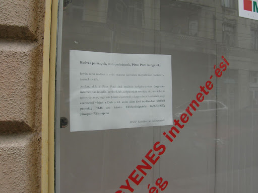 Kedves párttagok, szimpatizánsok, Piros Pont látogatók. István utcai irodánk a nyári szünetet követően megváltozott funkcióval üzemel tovább. Azok, akik a Piros Pont által nyújtott szolgáltatásokra (ingyenes internet, tanácsadás, senior klub, szépkorúak tornája, stb.) továbbra is igényt tartanak, vagy akik Julikával szeretnék a kapcsolatot fenntartani, nagy szeretettel várjuk a Dob utca 65 sz. alatti irodánkban.