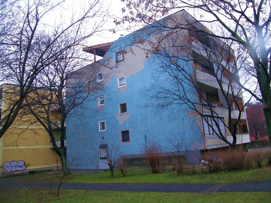Falfirkász, tegelő kisköcsögök, ide gyertek tegelni. Hatalmas, üres falfelületek, BMX gyakorlópálya, kurvasor, itt megmutathatjátok. Persze, nem véletlenül nincsenek errefelé szétfújva az üresen álló épületek. Ez itt a gettó, ez kemény vidék, a kannáikkal sötétben sunyuló kisköcsögök a balfasz és érdektelen rendőröktől nem félnek, de itt azt kapnák a seggükbe, amit a hátuk közepébe sem kívánnak. Ez egy igen kemény grund, itt megbasszák, megölik és megeszik a nyálas falfirkászokat, nem feltétlenül ebben a sorrendben. A műmájer GLK banda ("Getto Life Kings", muhaha) is inkább a veszélytelen belvárosban vandálkodik.