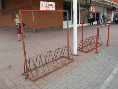 csak a kerék rögzítésére alkalmas, nem biztonságos bringatároló |
