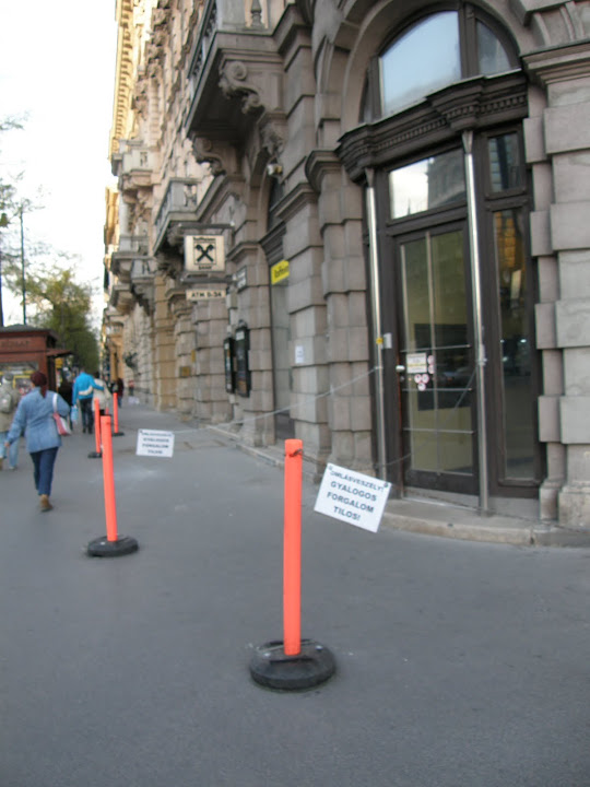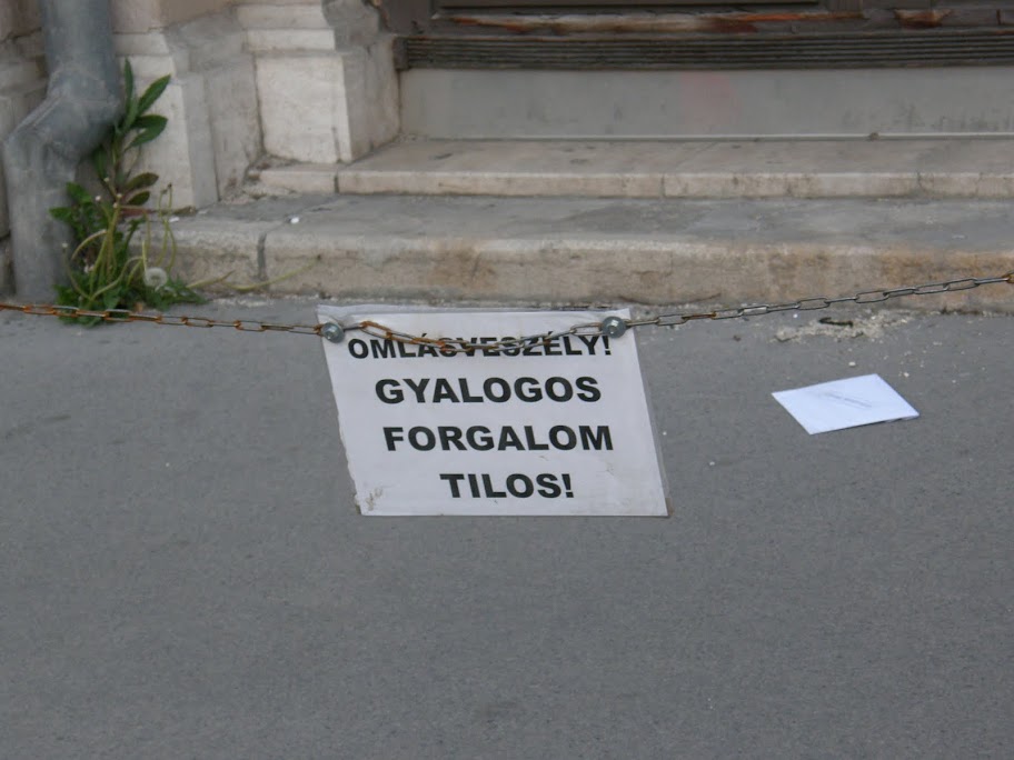 | Andrássy út 1, "felújítás" után: Omlásveszély! Gyalogos forgalom tilos! |