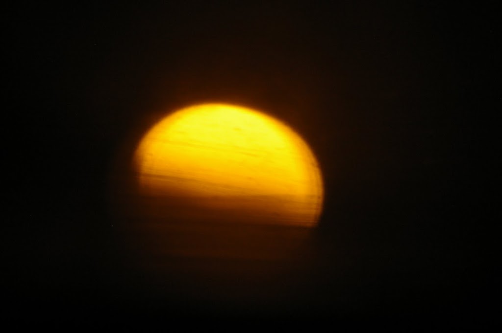 A Nap szeszélyesen kelt föl. Hosszú, szürke-narancsszín fények vetődtek a mozdulatlan óceánra és a csöndes Földre. A halványodó Napból koncentrikus fénygyűrűk szabadultak ki.