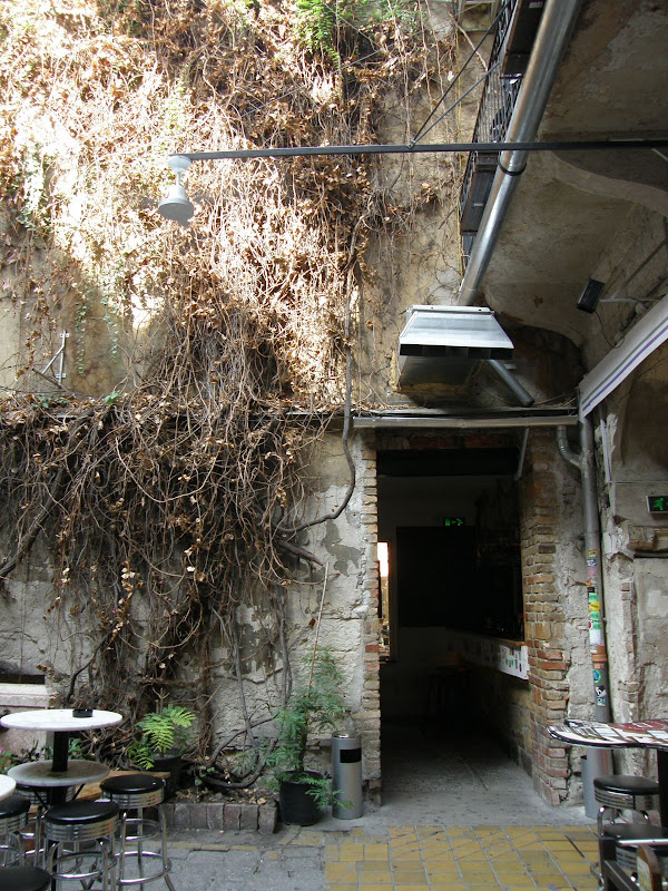 A Figaró nevű talpalatnyi lik kibérelte a szemközti társasház kertjét, padokkal - szökőkúttal -árnyadó fákkal, ezzel a felszereléssel már nehéz csődbe menni, szabadtéri kocsmákból erős hiány van ebben a sűrűn beépített városrészben. Szarunk a darálos, lepukkant wc-re, húgyozni ez is megfelel.