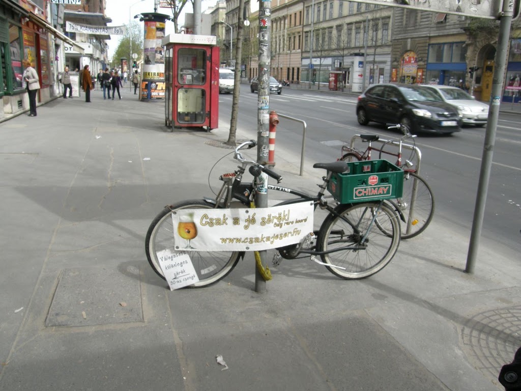 Hát az, hogy amit megtehetünk, azt meg is tesszük. Kezdetben egy-két bringásműhely hirdeti önmagát a szürkezónában, rendben. Utána jönnek a többiek, sördílerek, olajkereskedők, lemezboltosok, majd a plázák és multik, mert ők is szeretik az olcsó önreklámot. Én szóltam. Megjelennek a hiénák és mikor eléri a kritikus tömeget a reklámbringák száma (ami már akadályozni fogja a gyaloglást és zavarni a gyalogos többséget), akkor majd betiltják az önkormányzatok a "vadparkolást" és kereshet mindenki bringatárolót magának. Környezetbarát közlekedési eszközből területfoglaló vizuális környezetszennyezés. Ezt akarjuk?