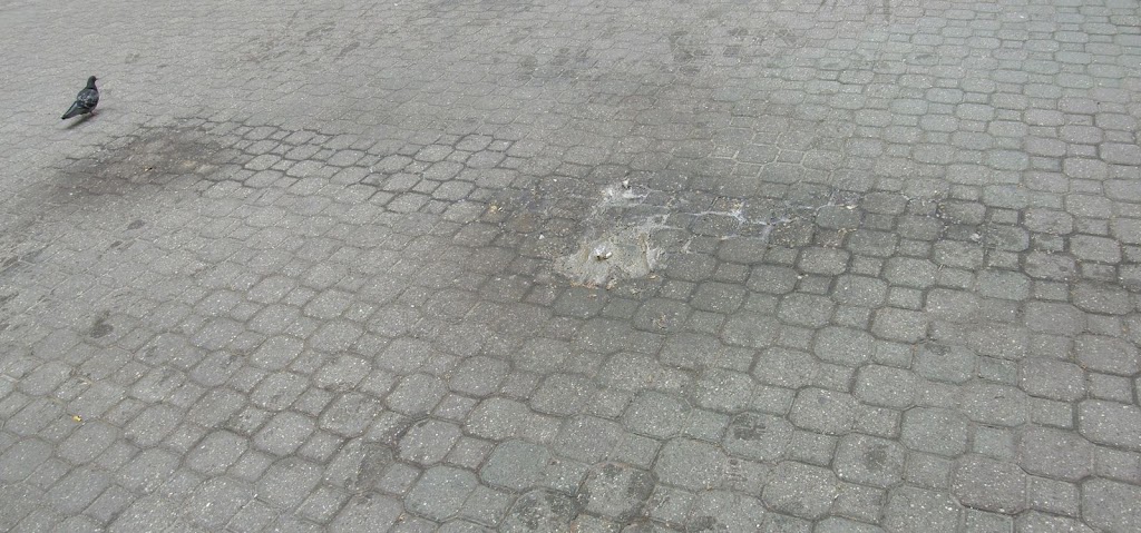 Hányást csipeget a galamb a sarkon.