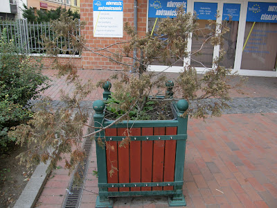 Végül is 2012-ben a köztérit feladtam, kiszedtem a tuja-maradványt, leszedtem a táblát és magára hagytam a ládát.
