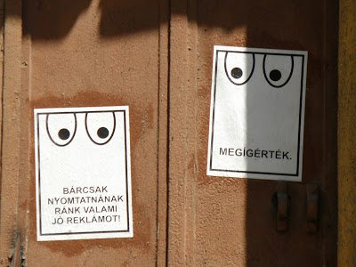„Was ich als Plakat hier mache? Rumhängen. Sonst nichts.“ (Mit csinálok plakátként itt? Lógok. Semmi mást)