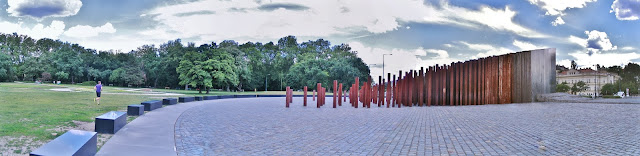 A városligeti emlékmű ék alakban összefutó fémoszlopokból áll. A Városligeti fasorral szemben, pontosan Sztálin egykori posztján elhelyezett alakzat a Dózsa György úttal 56 fokos szöget zár be. Az embermagasságból nyolcméteresre növekvő, rozsdásból kifényesedő vasoszlopok a cél érdekében egyesülni és összefogni képes magyarságot szimbolizálják, amely úgy törte meg a kommunizmus uralmát, ahogy az ék tükörszerűre csiszolt éle felhasítja a tér macskakő-burkolatát. Az emlékművet baloldalt magyarázó tábla és felhúzott lyukas lobogó egészíti ki. (wikipedia)
