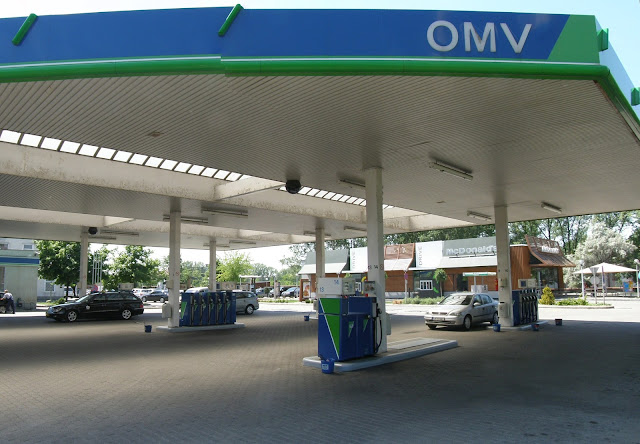 | Egy OMV benzinkút mellett |