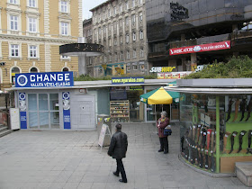 A lépcsősort, ahol gyakran ingyenes koncertekkel szórakoztatták az arra haladókat ráérő hittérítők, mára elfoglalta egy újabb bódésor, eufemisztikusan "Zöld Pont bevásárlóközpontnak" nevezve magát. Cséndzs mani, Subway, harisnyabolt és nyelőgépekkel kombinált kocsma: bizonyára égetően szükség volt ezekre, a maradék közterület feláldozása árán. Az engedélyt bizonyára a nagy misztifikálás-ködösítés jegyében arra adták ki, hogy a bódék nem foglalnak el közterületet, hiszen a tetejükre telepített bozótos tulajdonképpen megnöveli a zöldterület méretét. Ja. Tekintse meg a szögesdrótos, hangulatos függőkerteket, a pitiáner városképrongálás és gátlástalan átbaszás emlékművét. Mi áttelepítenénk az egész bódés kócerájt