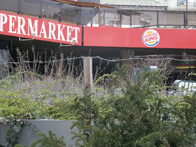 Hely már nemigen maradt a "bódés" kiskereskedelem terjeszkedésére, de az egyik élelmes csókosnak sikerült a maradék közterület egy részét beépítenie.